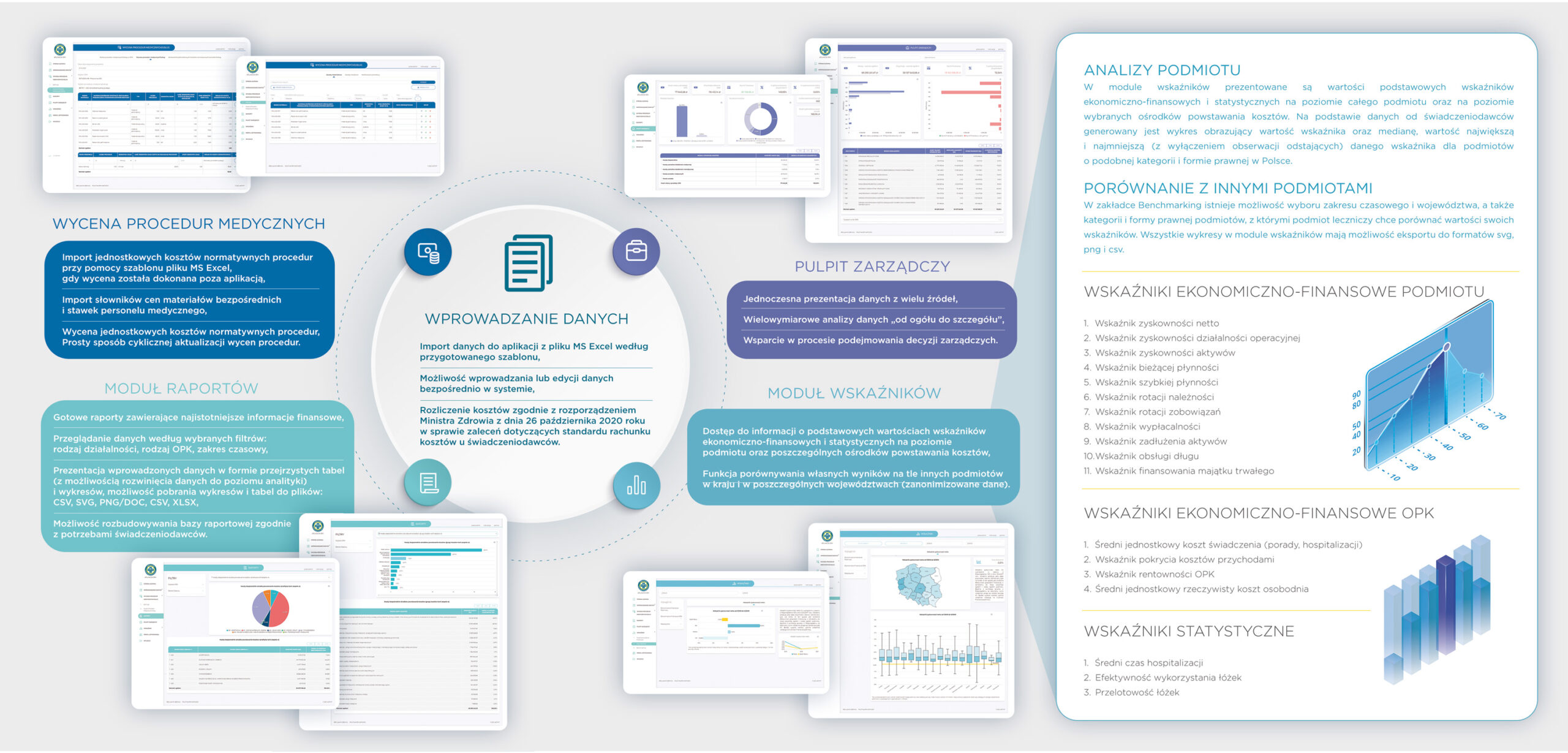- wprowadzenie danych poprzez import z plików bądź bezpośrednio w aplikacji rozliczenie kosztów zgodnie z rozporządzeniem Ministra Zdrowia z dnia 26 października 2020 r.